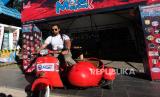 Seorang pengendara sekuter bersiap mengikuti pawai Mods May day 2024 di Papua, Taman Imbi, Kota Jayapura, Jumat (31/5/2024). Acara itu merupakan ajang berkumpulnya penggemar vespa sekuter yang ada di Papua, diisi dengan berbagai kegiatan seperti konvoi, musik serta fashion dan tatto art.  (FOTO : ANTARA FOTO/Gusti Tanati)