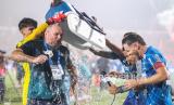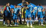REPUBLIKA.CO.ID, BANGKALAN -- Pesepak bola Persib Bandung dan ofisial tim mengangkat piala usai menjadi juara BRI Liga 1 2023/2024 di Stadion Gelora Bangkalan, Bangkalan, Jawa Timur, Jumat (31/5/2024).