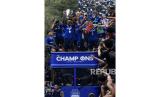 REPUBLIKA.CO.ID, BANDUNG -- Sejumlah pesepak bola Persib Bandung membawa tropi saat pawai menaiki Bandung Tour On The Bus (Bandros) melintasi Jalan Pasteur, Bandung, Jawa Barat, Sabtu (1/6/2024).