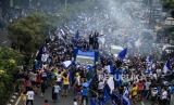 Ribuan bobotoh Persib memadati Jalan Pasupati, Kota Bandung, untuk menyambut kedatangan tim Persib atas kemenangannya di Liga Championship Series Liga 1 2023-2024, Sabtu (1/6/2024).   (FOTO : Edi Yusuf)