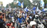 Ribuan bobotoh Persib memadati Jalan Pasupati, Kota Bandung, untuk menyambut kedatangan tim Persib atas kemenangannya (FOTO : Edi Yusuf)