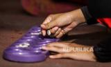 Pelajar mengikuti perlombaan congklak saat lomba kaulinan baheula di Kantor DPRD Kota Bogor, Jawa Barat, Ahad (2/6/2024). Perlombaan permainan tradisional berupa balap bakiak, egrang, congklak dan engklek tersebut sebagai upaya untuk melestarikan permainan tradisional kepada pelajar. (FOTO : Republika/Putra M. Akbar)