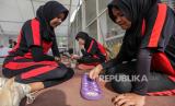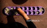 Pelajar mengikuti perlombaan balap bakiak saat lomba kaulinan baheula di Kantor DPRD Kota Bogor, Jawa Barat, Ahad (2/6/2024). Perlombaan permainan tradisional berupa balap bakiak, egrang, congklak dan engklek tersebut sebagai upaya untuk melestarikan permainan tradisional kepada pelajar. (FOTO : Republika/Putra M. Akbar)