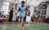 Pelajar mengikuti perlombaan balap egrang saat lomba kaulinan baheula di Kantor DPRD Kota Bogor, Jawa Barat, Ahad (2/6/2024). Perlombaan permainan tradisional berupa balap bakiak, egrang, congklak dan engklek tersebut sebagai upaya untuk melestarikan permainan tradisional kepada pelajar. (FOTO : Republika/Putra M. Akbar)