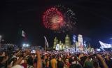 Kembang api dinyalakan saat para pendukung calon Presiden Claudia Sheinbaum merayakannya di Zocalo, alun-alun utama Kota Meksiko, setelah National Electoral Institute mengumumkan bahwa dia memegang keunggulan yang tidak dapat diubah dalam pemilu, Senin, (3/6/2024). (FOTO : AP)