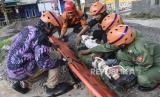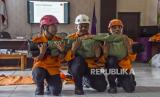 REPUBLIKA.CO.ID, CIAMIS -- Anggota Linmas dan relawan memberikan pertolongan kepada korban saat simulasi kebencanaan pada Sosialisasi Desa Tangguh Bencana (Destana) di Kantor Desa Pawindan, Kabupaten Ciamis, Jawa Barat, Selasa (4/6/2024).