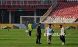 Ketua Umum PSSI Erick Thohir meninjau Stadion Utama Gelora Bung Karno (SUGBK), Jakarta, Rabu (5/6/2024). Erick Thohir mengungkapkan kondisi rumput di SUGBK sudah siap jelang laga kualifikasi Piala Dunia 2026 Zona Asia besok 6 Juni 2024 melawan Irak. Pada kesempatannya, Erick Thohir menjelaskan pentingnya kolaborasi antara PSSI dengan PPKGBK sebagai pengelola dari pihak pemerintah untuk memperhatikan jadwal penggunaan stadion sekaligus perawatannya untuk kemajuan Timnas Indonesia. (FOTO : Republika/Thoudy Badai)