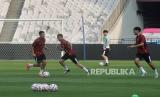 Pemain Timnas Indonesia melakukan latihan jelang pertandingan Kualifikasi Piala Dunia 2026 di Stadion Utama Gelora Bung Karno, Senayan, Jakarta, Rabu (5/6/2024). Timnas Indonesia akan melawan Timnas Irak pada pertandingan ke-5 Grup F Kualifikasi Piala Dunia 2026, Kamis 6 Juni 2024. (FOTO : Republika/Edwin Dwi Putranto)