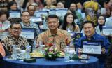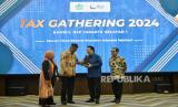 Kepala Kanwil DJP Jakarta Selatan I Dionysius Lucas Hendrawan (kiri) bersama Presiden Direktur PT Adaro Energy Indonesia Tbk Garibaldi Thohir (tengah) dan Staf Khusus Menteri Keuangan Bidang Komunikasi Strategis Yustinus Prastowo (kanan) berfoto bersama dalam acara Tax Gathering di Jakarta, Kamis (6/6/2024). Dua anak perusahaan Adaro Group yaitu PT Laskar Semesta Alam (PT LSA) dan PT Alam Tri Bangun Indonesia (PT ATBI) mendapatkan apresiasi dan anugerah sebagai Wajib Pajak dengan Kontribusi Terbesar pada Tahun 2023 dari DJP Jakarta Selatan I. Sebagai perusaahan nasional, Adaro berkomitmen untuk terus berkontribusi bagi pembangunan dan kemajuan ekonomi Indonesia melalui pajak dan royalti. Pada Tahun 2023 Adaro Group telah memberikan kontribusi kepada megara senilai total US$ 2,995 miliar dalam bentuk pajak dan royalti. (FOTO : Republika/Thoudy Badai)