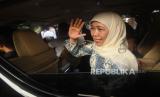 Mantan Gubernur Jawa Timur Khofifah Indar Parawansa melambaikan tangan ke arah wartawan dari dalam mobilnya usai menemui Ketua Umum Partai Gerindra Prabowo Subianto di Jalan Kertanegara, Kebayoran Baru, Jakarta, Jumat (7/6/2024). Prabowo memberikan rekomendasi dukungan dari partainya untuk Khofifah dan Emil Dardak dalam Pemilihan Gubernur dan Wakil Gubernur Jawa Timur 2024. (FOTO : ANTARA FOTO/Aditya Pradana Putra)