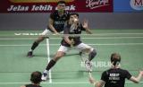 REPUBLIKA.CO.ID, JAKARTA -- Pebulu tangkis ganda putra Indonesia Bagas Maulana dan Muhammad Shohibul Fikri bertanding melawan ganda putra Denmark Kim Astrup dan Anders Skaarup Rasmussen dalam babak perempatfinal Indonesia Open 2024 di Istora Senayan, Jakarta, Jumat (7/6/2024).