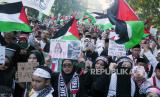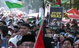 Ribuan massa mengikuti aksi bela Palestina Jawa Barat Melawan Zionis yang digelar Koalisi Jawa Barat Selamatkan Palestina, di depan Gedung DPRD Jawa Barat, Kota Bandung, Sabtu (8/6/2024). Aksi tersebut mengutuk krisis kemanusiaan dan kebiadaban Zionis Israel terhadap bangsa Palestina. (FOTO : Edi Yusuf/Republika)