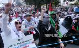 REPUBLIKA.CO.ID, BANDUNG -- Ribuan massa mengikuti aksi bela Palestina Jawa Barat Melawan Zionis yang digelar Koalisi Jawa Barat Selamatkan Palestina, di depan Gedung DPRD Jawa Barat, Kota Bandung, Sabtu (8/6/2024).