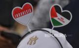 REPUBLIKA.CO.ID, JAKARTA -- Sejumlah orang mengikuti aksi damai bermilyar dukungan untuk Gaza dan Palestina di Kawasan Patung Kuda, Monas, Jakarta, Ahad (9/6/2024) .