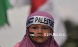 Seorang anak mengikuti aksi damai bermilyar dukungan untuk Gaza dan Palestina di Kawasan Patung Kuda, Monas, Jakarta, Ahad (9/6/2024) . Aksi tersebut menuntut agar Israel menghentikan tindakan agresi militer ke Palestina dan mengutuk keras tindakan brutal Israel yang menyerang warga sipil termasuk anak-anak. Dalam aksi itu juga menyerukan boikot terhadap produk-produk yang mendukung Israel. (FOTO : Republika/Prayogi)