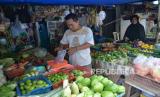 Pedagang sayuran melayani pembeli di Pasar Palmerah, Jakarta, Selasa (11/6/2024). Menurut pedagang menjelang Idul Adha harga bahan pokok mulai mengalami kenaikan seperti minyak goreng mengalami kenaikan 10 ribu per jerigen dan telur Rp 29 ribu per kilogramnya, Namun untuk sayuran seperti aneka cabe dan bawang masih dalam kondisi stabil yaitu kisaran Rp 40 ribu-60 ribu per Kilogramnya . Pedagang memperkirakan kebutuhan bahan pokok masyarakat tersebut akan mengalami kenaikan mendekati hari H Idul Adha mendatang. (FOTO : Republika/Prayogi)