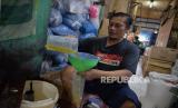 Pedagang menungakan minyak goreng ke dalam plastik literan di Pasar Palmerah, Jakarta, Selasa (11/6/2024). Menurut pedagang menjelang Idul Adha harga bahan pokok mulai mengalami kenaikan seperti minyak goreng mengalami kenaikan 10 ribu per jerigen dan telur Rp 29 ribu per kilogramnya, Namun untuk sayuran seperti aneka cabe dan bawang masih dalam kondisi stabil yaitu kisaran Rp 40 ribu-60 ribu per Kilogramnya . Pedagang memperkirakan kebutuhan bahan pokok masyarakat tersebut akan mengalami kenaikan mendekati hari H Idul Adha mendatang. (FOTO : Republika/Prayogi)
