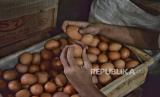 Pedagang menata telur di Pasar Palmerah, Jakarta, Selasa (11/6/2024). Menurut pedagang menjelang Idul Adha harga bahan pokok mulai mengalami kenaikan seperti minyak goreng mengalami kenaikan 10 ribu per jerigen dan telur Rp 29 ribu per kilogramnya, Namun untuk sayuran seperti aneka cabe dan bawang masih dalam kondisi stabil yaitu kisaran Rp 40 ribu-60 ribu per Kilogramnya . Pedagang memperkirakan kebutuhan bahan pokok masyarakat tersebut akan mengalami kenaikan mendekati hari H Idul Adha mendatang. (FOTO : Republika/Prayogi)