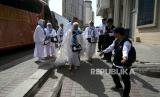 Jamaah calon haji Indonesia kloter 106 embarkasi Surabaya berjalan menuju hotelnya di Makkah, Arab Saudi, Selasa (11/6/2024). Fase kedatangan jamaah haji Indonesia 1445 H/2024 M di tanah suci telah berakhir pada Selasa 11 Juni 2024 yang ditandai dengan mendaratnya 333 jamaah yang tergabung dalam kelompok terbang 106 embarkasi Surabaya (SUB-106).  (FOTO : ANTARA FOTO/Sigid Kurniawan)