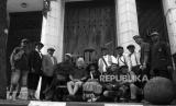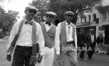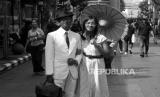 Sejumlah orang berpakaian jaman dulu era tahun 1930 hadir di Jalan Braga, Kota Bandung, saat acara 142 Jaar Oude Braga Straat bersama anggota Paguyuban Sapedah Baheula Bandung, Ahad (16/6). Kegiatan tersebut digelar dalam rangka 142 Tahun Jalan Braga, dan para anggota komunitas sepeda tua tersebut mencoba menghadirkan suasana Jalan Braga tempo dulu. (FOTO : Edi Yusuf/Republika)