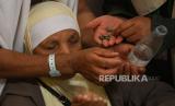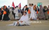 Jamaah haji beristirahat saat pelaksanaan jumrah aqobah di Jamarat, Makkah, Arab Saudi, Ahad (16/6/2024). Lempar jumrah aqobah merupakan salah satu syarat yang wajib dilakukan pada ibadah haji sebagai simbol pengusiran setan yang pernah dilakukan Nabi Ibrahim AS. (FOTO : EPA-EFE)
