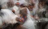 Jamaah haji berjalan untuk melaksanakan jumrah aqobah di Jamarat, Makkah, Arab Saudi, Ahad (16/6/2024). Lempar jumrah aqobah merupakan salah satu syarat yang wajib dilakukan pada ibadah haji sebagai simbol pengusiran setan yang pernah dilakukan Nabi Ibrahim AS. (FOTO : EPA-EFE)