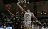 REPUBLIKA.CO.ID, SEMARANG -- Satria Muda Pertamina Jakarta bertanding melawan Satya Wacana Salatiga pada pertandingan Indonesia Basketball League (IBL) 2024 di Knight Stadium, Semarang, Jawa Tengah, Ahad (16/6/2024).