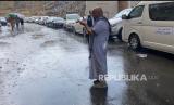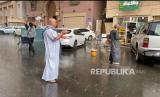 Warga Saudi menyambut hujan dengan turun ke jalan sembari berdoa. Hujan ini pun sedikit menurunkan suhu di Kota Mekkah yang mencapai 45 derajat celcius.
