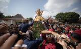 REPUBLIKA.CO.ID, YOGYAKARTA -- Sejumlah Abdi Dalem Keraton Yogyakarta membagikan gunungan saat Grebeg Besar di Masjid Kauman, Yogyakarta, Selasa (18/6/2024).