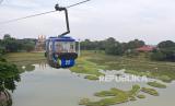 Pengunjung menikmati kereta gantung saat berwisata di Taman Mini Indonesia Indah (TMII), Jakarta, Selasa (18/6/2024). Warga memanfaatkan libur cuti bersama Idul Adha 1445 H dengan berkunjung ke berbagai anjungan di TMII yang merupakan miniatur Indonesia dalam satu kawasan wisata.  (FOTO : ANTARA FOTO/Indrianto Eko Suwarso)
