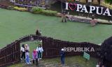 REPUBLIKA.CO.ID, JAKARTA -- Pengunjung berada  di anjungan Papua saat berwisata di Taman Mini Indonesia Indah (TMII), Jakarta, Selasa (18/6/2024).