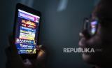 REPUBLIKA.CO.ID, JAKARTA -- Warga melihat iklan judi online melalui gawainya di Jakarta, Rabu (19/6/2024).