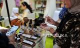 Pengunjung saat mengunjungi Bazar UMKM untuk Indonesia bertajuk Herb Euphoria Fest 2024 di Sarinah, Jakarta, Kamis (20/6/2024). Kementerian BUMN menggelar bazar produk herbal khas nusantara buatan UMKM binaan BUMN di dua kota yakni Jakarta pada 20-23 Juni dan Bali 27-30 Juni 2024 mendatang. Bazar tersebut diikuti oleh 90 UMKM binaan BUMN penyelenggara yakni Pelindo, Bank Mandiri, Adhi Karya, Permodalan Nasional Madani (PNM), dan Perhutani dengan menyediakan ratusan produk olahan herbal seperti jamu, aromatheraphy, makanan dan minuman, produk kecantikan hingga produk fesyen ramah lingkungan. Kegiatan tersebut diharapkan mampu mendorong pengembangan UMKM serta edukasi bagi masyarakat tentang kekayaan hebal khas nusantara. (FOTO : Dok Republika)