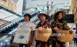 Panitia mengenakan pakaian kebaya dan caping saat Bazar UMKM untuk Indonesia bertajuk Herb Euphoria Fest 2024 di Sarinah, Jakarta, Kamis (20/6/2024). Kementerian BUMN menggelar bazar produk herbal khas nusantara buatan UMKM binaan BUMN di dua kota yakni Jakarta pada 20-23 Juni dan Bali 27-30 Juni 2024 mendatang. Bazar tersebut diikuti oleh 90 UMKM binaan BUMN penyelenggara yakni Pelindo, Bank Mandiri, Adhi Karya, Permodalan Nasional Madani (PNM), dan Perhutani dengan menyediakan ratusan produk olahan herbal seperti jamu, aromatheraphy, makanan dan minuman, produk kecantikan hingga produk fesyen ramah lingkungan. Kegiatan tersebut diharapkan mampu mendorong pengembangan UMKM serta edukasi bagi masyarakat tentang kekayaan hebal khas nusantara. (FOTO : Dok Republika)