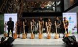 Staf Ahli Bidang Keuangan dan Pengembangan UMKM Kementerian BUMN Loto Srinaita Ginting (keempat kiri) bersama perwakilan Direksi dari BUMN penyelenggara melakukan penabuhan alu dan lesung sebagai seremoni pembukaan kegiatan Bazar UMKM untuk Indonesia bertajuk Herb Euphoria Fest 2024 di Sarinah, Jakarta, Kamis (20/6/2024). Kementerian BUMN menggelar bazar produk herbal khas nusantara buatan UMKM binaan BUMN di dua kota yakni Jakarta pada 20-23 Juni dan Bali 27-30 Juni 2024 mendatang. Bazar tersebut diikuti oleh 90 UMKM binaan BUMN penyelenggara yakni Pelindo, Bank Mandiri, Adhi Karya, Permodalan Nasional Madani (PNM), dan Perhutani dengan menyediakan ratusan produk olahan herbal seperti jamu, aromatheraphy, makanan dan minuman, produk kecantikan hingga produk fesyen ramah lingkungan. Kegiatan tersebut diharapkan mampu mendorong pengembangan UMKM serta edukasi bagi masyarakat tentang kekayaan hebal khas nusantara. (FOTO : Dok Republika)