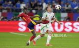 REPUBLIKA.CO.ID, JERMAN -- Duel dua tim tangguh Spanyol vs Italia terjadi pada pertandingan Grup B Euro 2024 di Gelsenkirchen, Jerman, Jumat (21/6/2024) WIB.