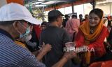 REPUBLIKA.CO.ID, JAKARTA -- Petugas LRT (Light Rail Transit) membagikan makanan khas Betawi ke calon penumpang di Stasiun Dukuh Atas, Jakarta, Sabtu (22/6/2024).