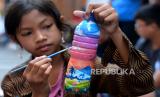 REPUBLIKA.CO.ID, BADUNG -- Seorang anak melukis di atas botol plastik bekas saat mengikuti pelatihan bertajuk Recycle to a Brighter Future di Nusa Dua, Badung, Bali, Sabtu (22/6/2024).