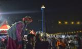 Badut menghibur warga dalam Malam Jaya Raya di kawasan Monas, Jakarta, Sabtu (22/6/2024). Malam Jaya Raya Jakarta menjadi puncak HUT ke-497 Jakarta. Acara ini menampilkan sejumlah hiburan bagi masyarakat seperti pasar malam, penampilan band, karnaval mobil hias, hingga pesta kembang api. HUT kali ini mengusung tema Jakarta Kota Global Berjuta Pesona. Ribuan warga yang berantusias memenuhi kawasan Monas. (FOTO : Republika/Prayogi)