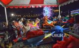 Anak-anak mencoba wahana permainan saat Malam Jaya Raya di kawasan Monas, Jakarta, Sabtu (22/6/2024). Malam Jaya Raya Jakarta menjadi puncak HUT ke-497 Jakarta. Acara ini menampilkan sejumlah hiburan bagi masyarakat seperti pasar malam, penampilan band, karnaval mobil hias, hingga pesta kembang api. HUT kali ini mengusung tema Jakarta Kota Global Berjuta Pesona. Ribuan warga yang berantusias memenuhi kawasan Monas. (FOTO : Republika/Prayogi)