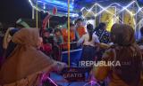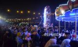 Warga mengantri untuk menaiki wahana saat Malam Jaya Raya di kawasan Monas, Jakarta, Sabtu (22/6/2024). Malam Jaya Raya Jakarta menjadi puncak HUT ke-497 Jakarta. Acara ini menampilkan sejumlah hiburan bagi masyarakat seperti pasar malam, penampilan band, karnaval mobil hias, hingga pesta kembang api. HUT kali ini mengusung tema Jakarta Kota Global Berjuta Pesona. Ribuan warga yang berantusias memenuhi kawasan Monas. (FOTO : Republika/Prayogi)