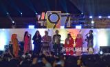 Penjabat (Pj) Gubernur DKI Jakarta Heru Budi Hartono membagikan kaos saat Malam Jaya Raya di kawasan Monas, Jakarta, Sabtu (22/6/2024). Malam Jaya Raya Jakarta menjadi puncak HUT ke-497 Jakarta. Acara ini menampilkan sejumlah hiburan bagi masyarakat seperti pasar malam, penampilan band, karnaval mobil hias, hingga pesta kembang api. HUT kali ini mengusung tema Jakarta Kota Global Berjuta Pesona. Ribuan warga yang berantusias memenuhi kawasan Monas. (FOTO : Republika/Prayogi)