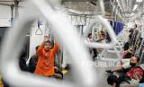 Penumpang menaiki kereta MRT di Stasiun Bundaran HI, Jakarta, Ahad (23/6/2024). Pemprov DKI Jakarta menerapkan tarif Rp1 untuk layanan transportasi publik seperti MRT, LRT Jakarta dan Transjakarta mulai dari 22-23 Juni 2024 hari ini dalam rangka HUT ke-497 Jakarta. Pemberlakukan tarif Rp1 ini berlaku pada pukul 00.00-23.59 WIB. (FOTO : Republika/Thoudy Badai)