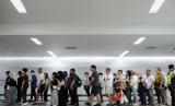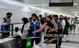 REPUBLIKA.CO.ID, JAKARTA -- Penumpang mengantre untuk menempelkan kartu uang elektronik sebelum menaiki kereta MRT di Stasiun Bundaran HI, Jakarta, Ahad (23/6/2024).