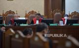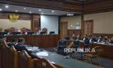 Suasana sidang lanjutan yang menghadirkan saksi mahkota yaitu terdakwa kasus pemerasan dan gratifikasi di Kementerian Pertanian yang juga mantan Menteri Pertanian Syahrul Yasin Limpo (SYL) di Pengadilan Tipikor, Jakarta, Senin (24/6/2024). Syahrul Yasin Limpo (SYL) menjadi saksi mahkota untuk mantan Sekjen Kementan Kasdi Subagyono dan mantan Direktur Alat dan Mesin Pertanian Kementan Muhammad Hatta. Saksi mahkota merupakan terdakwa yang bersaksi untuk terdakwa lainnya. (FOTO : Republika/Prayogi)