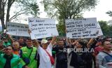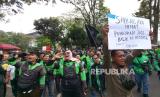 REPUBLIKA.CO.ID, BANDUNG -- Pengemudi ojek online (ojol) dan taksi online melakukan aksi demonstrasi di depan Gedung Sate, Kota Bandung, Selasa (25/6/2024).