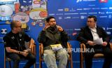 REPUBLIKA.CO.ID, JAKARTA -- Head of Communications Jakarta Sneaker Day, Adityalogy, Event Director Jakarta Sneaker Day, Dimas Aditya, Vice President BCA Fandy Kawira dan Co Founder Jakarta Sneaker Day, Andrey Noelfry berbincang usai menyampaikan keterangan pers di Jakarta, Selasa (25/6/2024).
