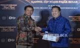 Presiden Direktur PT Adaro Energy Indonesia Tbk (Adaro) Garibaldi Thohir (kanan) menerima penghargaan dari Kepala Kantor Wilayah DJP Wajib Pajak Besar Yunirwansyah (kiri) di Jakarta, Rabu (26/6/2024). PT Adaro Indonesia mendapatkan apresiasi dan anugerah atas komitmen perusahaan yang senantiasa tertib dan transparan, yaitu ketaatan dan kepatuhan melaksanakan kewajiban perpajakan sesuai peraturan perpajakan yang berlaku dan dengan pelaporan perpajakan secara tepat waktu, serta berkontribusi terbesar pada Tahun Pajak 2023 di Kantor Wilayah DJP Wajib Pajak Besar. (FOTO : Republika/Prayogi)