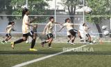 REPUBLIKA.CO.ID, JAKARTA -- Pesepak bola Timnas putri Indonesia mengikuti pemusatan latihan (TC) di Lapangan Rugby, komplek GBK, Jakarta, Rabu (26/6/2024).