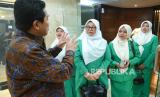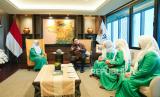 Menteri BUMN Erick Thohir bertemu dengan Ketua Umum Fatayat Nahdlatul Ulama Margaret Aliyatul Maimunah dan pengurus lainnya di Kantor BUMN, Jakarta, Rabu (26/6/2024). Dalam kesempatan itu, Erick berbagi tentang pemberdayaan peran perempuan dan bagaimana lembaga BUMN yang terus mendorong 25 persen kepemimpinan perempuan. (FOTO : Dok Republika)